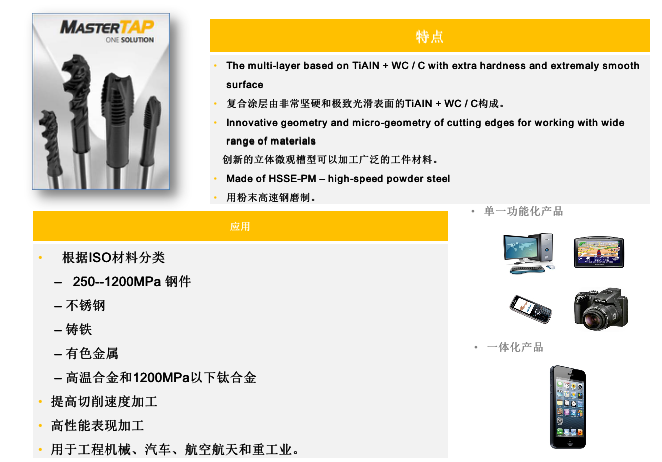 MasterTAP是為高性能螺紋加工而設計的,可以應用于廣泛的工件材料加工,例如鋼、不銹鋼、鑄鐵、有色金屬、耐熱合金和鈦合金等工件