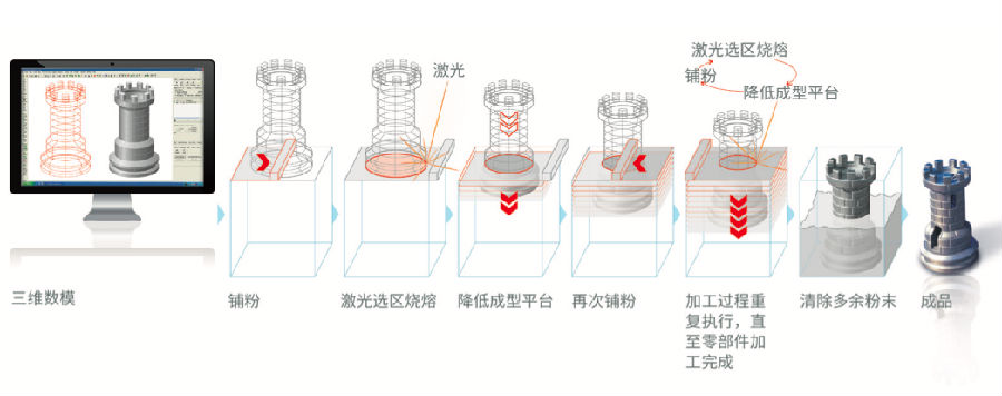 增材制造技術(shù)可直接利用三維 CAD 數(shù)據(jù)進(jìn)行零部件生產(chǎn)。通過將超微粒粉末材料逐層堆積對(duì)零部件進(jìn)行成型加工,適用于加工各種金屬與塑料材料。