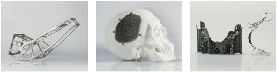 采用 EOS 鈦合金 Ti64 制成的 顱骨植入體:多孔結(jié)構(gòu)確保 腦脊液的流動(dòng),骨組織能與 植入體外緣共同生長(zhǎng)。 (來(lái)源:Alphaform、Novax DMA)