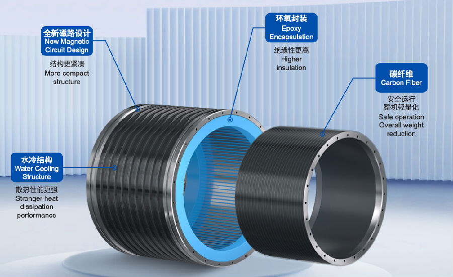High Power Density: The XT series, through innovative coil arrangement technology, has significantly increased the slot fill rate, allowing the motor to achieve industry-leading levels of torque density.
