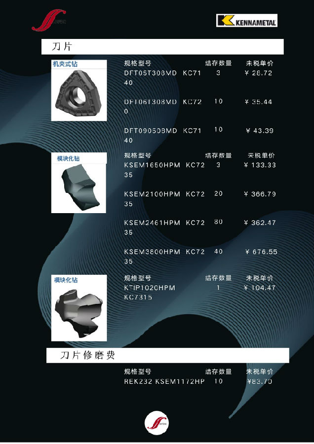 【KENNAMETAL肯納】刀片、鉆頭、銑刀、刀桿等優(yōu)惠促銷