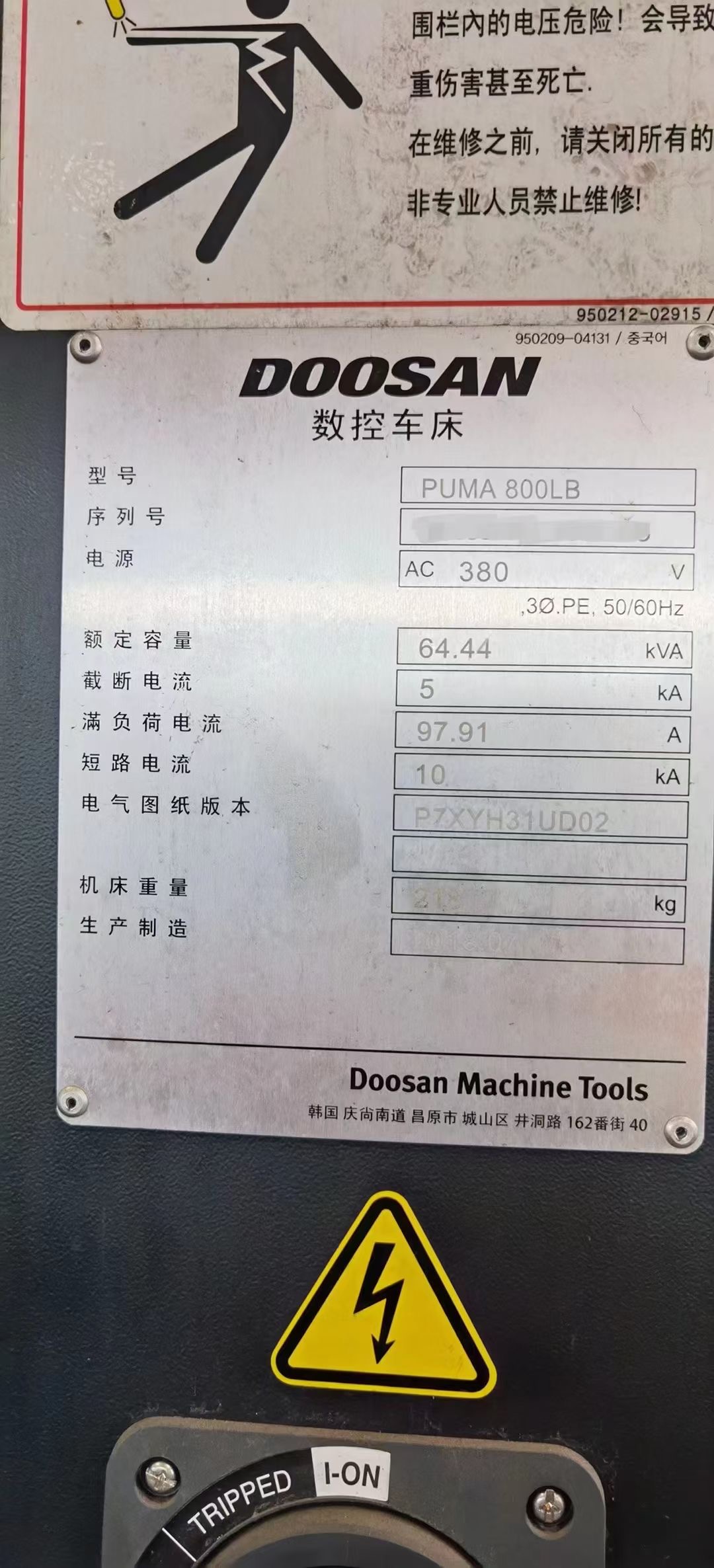 全新未用韓國(guó)原裝斗山D00SAN、PUMA800LB