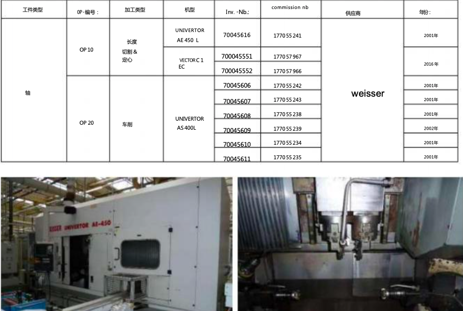 1.2.1 OP 10_20 長(zhǎng)度切割和定心,3 臺(tái)。 Weisser + Preturning,6 臺(tái)