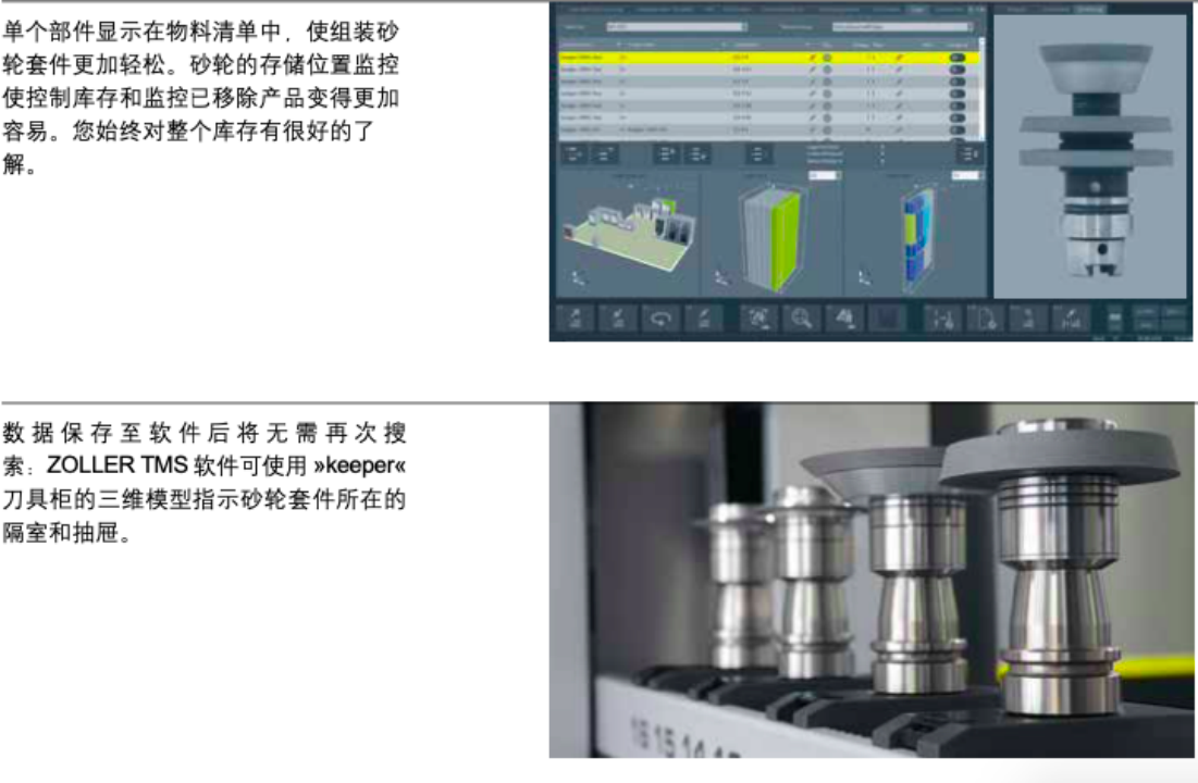 存儲(chǔ)位置管理可確保您更好地預(yù)覽砂 輪:直接顯示在虛擬 3D 存儲(chǔ)空間, 包括所有部件的庫(kù)存管理。