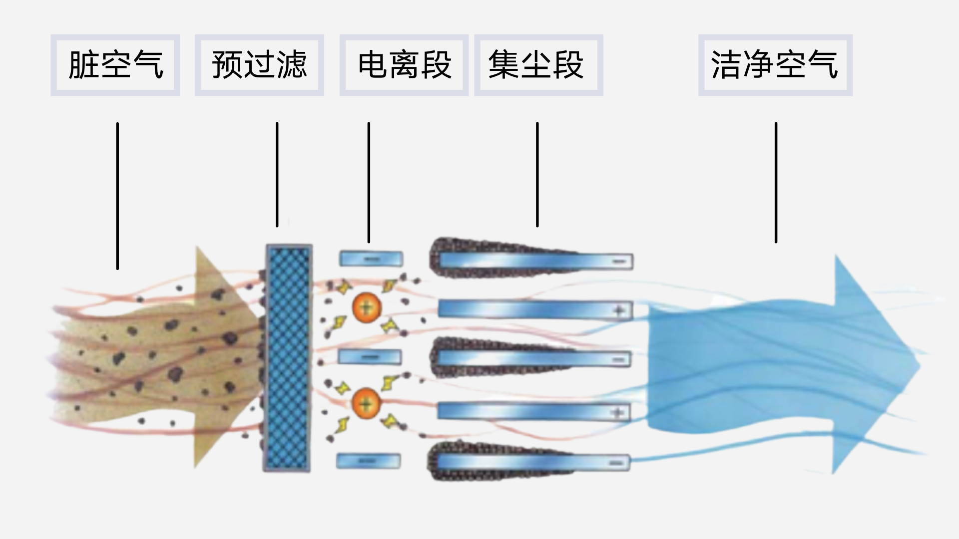 靜電型空氣過濾器工作原理: