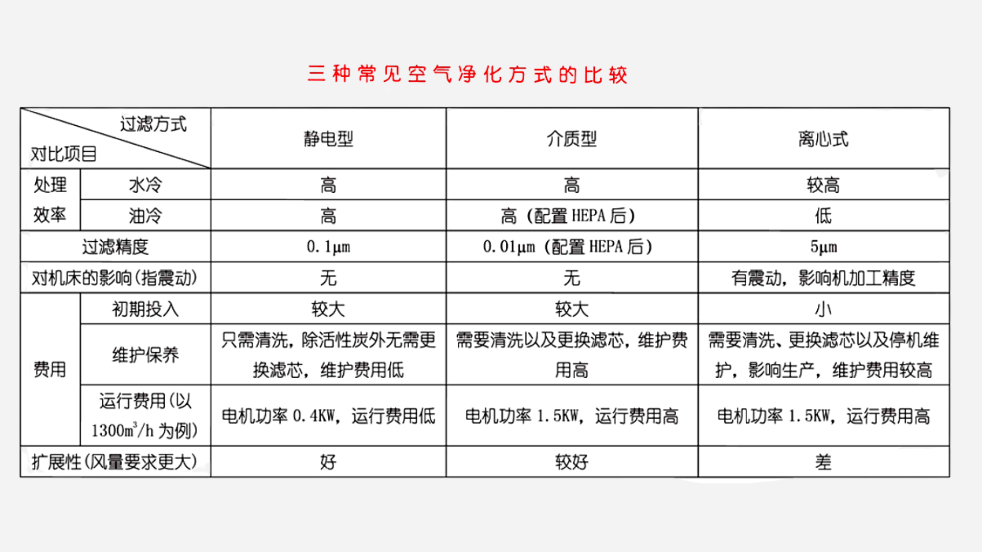 三種常見空氣凈化方式的比較: