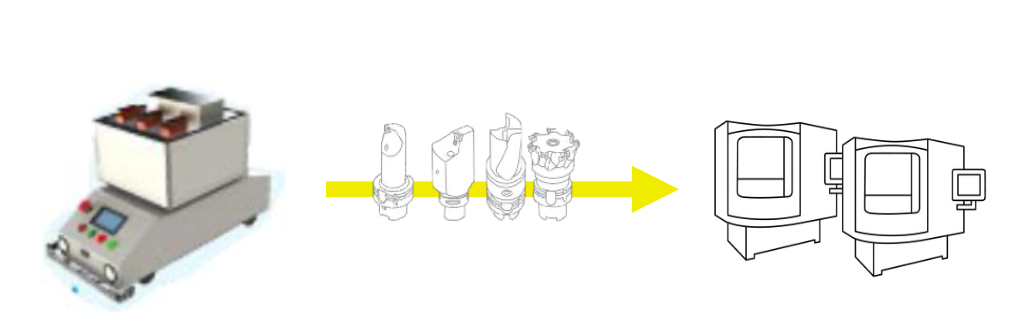 ? 清洗機(jī)清洗待調(diào)整到庫(kù)內(nèi)刀具